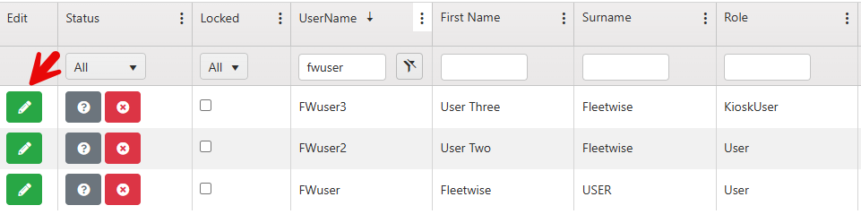 On the maintain user page, find the user you would like to deactivate using filters and click on the edit button next to the user profile.